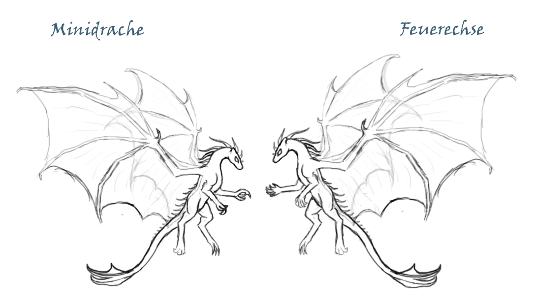 [/div]Diejenigen die die Pernbücher kennen aber "die Dämmerung der Drachen" nicht gelesen haben, werden jetzt sagen "Minidrachen? Was??". Nun der Name hat sich nicht durchgesetzt. Ihre Entdeckerin wollte dass man sie so nennt, wegen der Ähnlichkeit zu den mythischen Wesen der Erde, aber er ist von der Mehrheit der Menschen nicht übernommen worden so dass er bald vergessen wurde. Dennoch mag ich die Ursprungsform dieser Geschöpfe gerne so nennen, so kann man sie gut von der späteren Form unterscheiden: